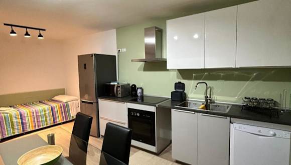Die Ferienwohnung beinhaltet zwei Schlafzimmer, ein Wohnzimmer und eine voll ausgestattete Küche mit Kühlschrank und Kaffeemaschine. Das Badezimmer ist mit einem Bidet und einer Dusche ausgestattet. Handtücher und Bettwäsche werden bereitgestellt.