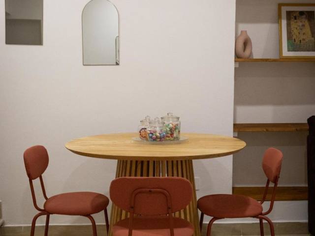 Die Ferienwohnung verfügt über ein Schlafzimmer, eine Küche mit Kühlschrank und Ofen sowie ein Badezimmer, das mit einem Bidet ausgestattet ist. Des Weiteren sind ein Flachbild-TV und ein Sitzbereich vorhanden. Die Unterkunft bietet auch Gartenmöbel und ist für bis zu vier Gäste geeignet.