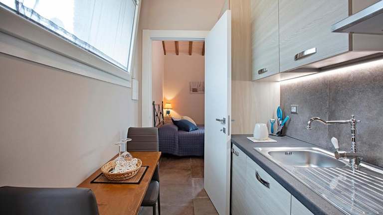 Die Ferienwohnung in Casa Ciaccheri 2 ist mit Bettwäsche, Handtüchern, einem Flachbild-TV, einem Essbereich, einer voll ausgestatteten Küche und einer Terrasse mit Stadtblick ausgestattet.
