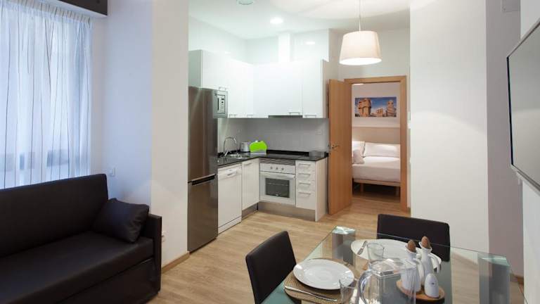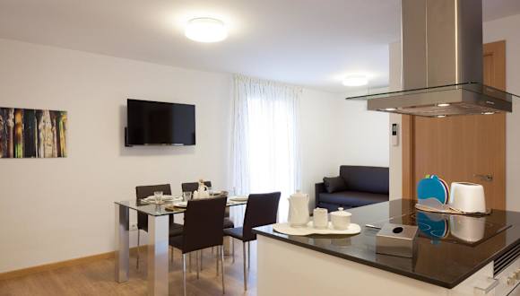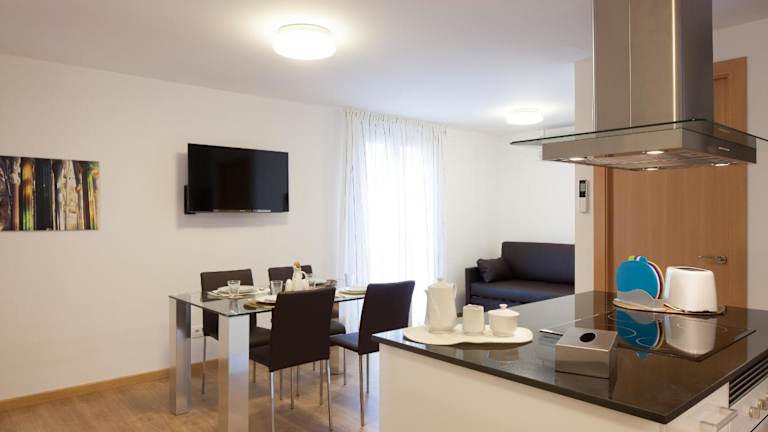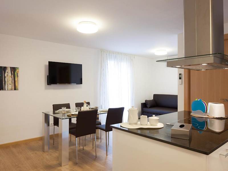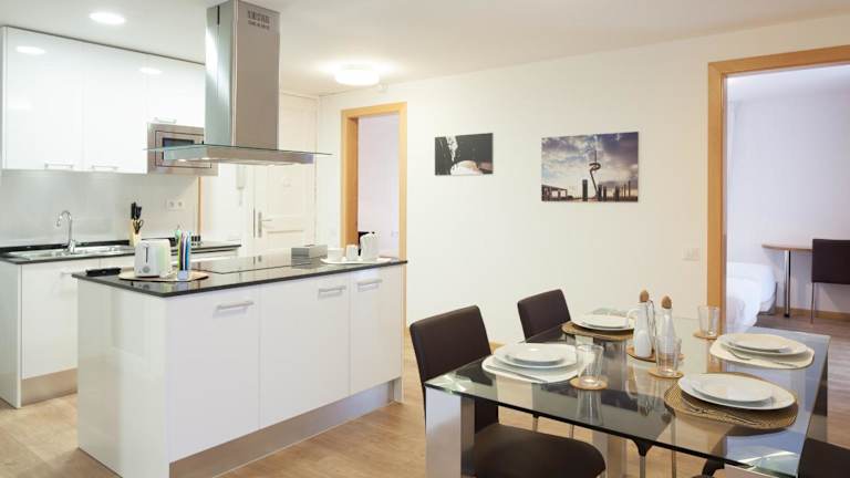 Die Apartments im Casa Codina umfassen einen Wohnbereich mit Sofa und Flachbild-Sat-TV sowie einen Esstisch. Die moderne Küchenzeile ist mit einem Herd, einem Backofen, einer Mikrowelle und einer Spülmaschine ausgestattet.
