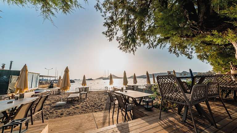 - Sonnenliegen/ Strandkörbe