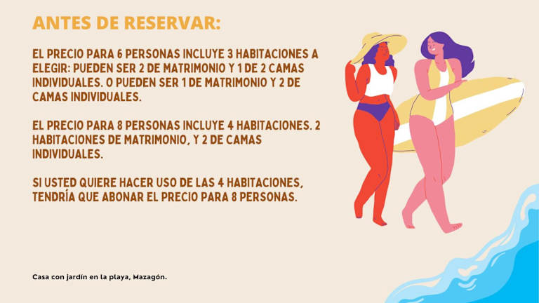 Das klimatisierte Ferienhaus im Casa con jardín en la playa verfügt über 4 geräumige Schlafzimmer, die für eine erholsame Nachtruhe sorgen. Das gemütliche Wohnzimmer lädt zum Entspannen ein und die voll ausgestattete Küche bietet alles, was Sie für die Zubereitung von Mahlzeiten benötigen, einschließlich Kühlschrank und Kaffeemaschine. Die 2 Badezimmer sind mit einem Bidet und einer Dusche ausgestattet. Handtücher und Bettwäsche werden im Ferienhaus gestellt, um Ihren Aufenthalt so angenehm wie möglich zu gestalten.