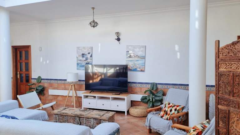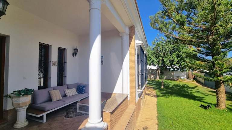 Verbringen Sie einen erholsamen Urlaub im Casa con jardín en la playa in Mazagón. Das Ferienhaus bietet einen wunderschönen Garten, eine Gemeinschaftslounge und eine Terrasse mit Meerblick. Genießen Sie die kostenfreie WLAN-Verbindung und die vielfältigen Aktivitäten wie Wandern und Angeln in der Umgebung. Das klimatisierte Ferienhaus verfügt über 4 Schlafzimmer, ein gemütliches Wohnzimmer und eine voll ausgestattete Küche. Entspannen Sie sich in den 2 Badezimmern mit Bidet und Dusche. Handtücher und Bettwäsche werden gestellt. Nutzen Sie den Grill im Garten für ein gemütliches Barbecue. Der Strand Playa del Vigía ist nur 200 m entfernt und der Golf Nuevo Portil erreichen Sie nach 36 km. Der Flughafen Sevilla ist etwa 118 km entfernt.