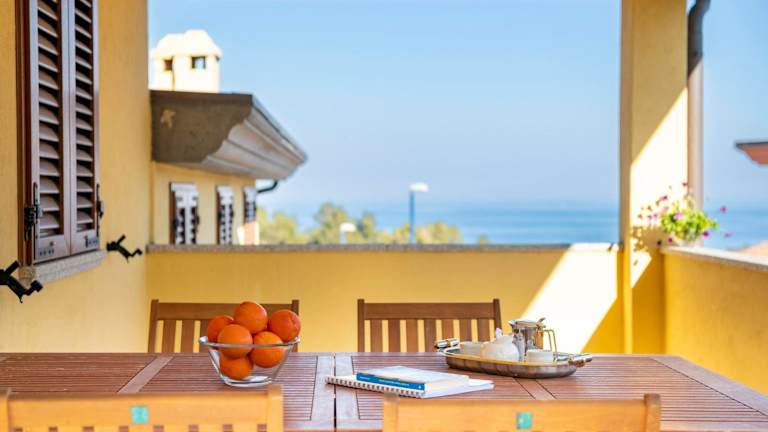 Casa con vista mare e monti ist eine Ferienwohnung, die Übernachtungsmöglichkeiten bietet. Die Unterkunft beinhaltet eine Veranda oder Terrasse und ermöglicht den Gästen die Nutzung von kostenlosem WLAN.