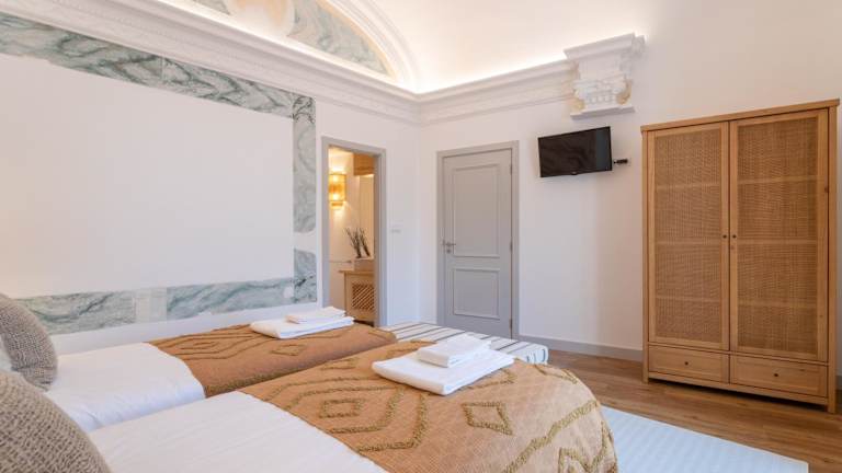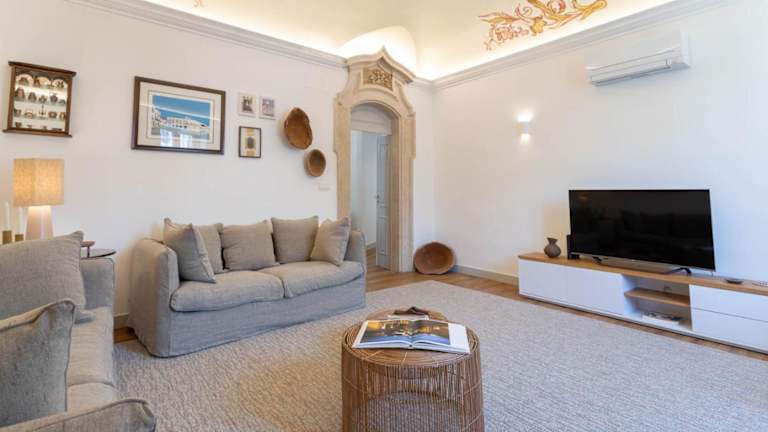Die Ferienwohnung verfügt über Klimaanlage, zwei Schlafzimmer, ein Wohnzimmer und eine voll ausgestattete Küche, die mit einem Kühlschrank und einer Kaffeemaschine eingerichtet ist. Zusätzlich gibt es drei Badezimmer, die mit einem Bidet und einer Dusche ausgestattet sind. Handtücher und Bettwäsche werden zur Verfügung gestellt.