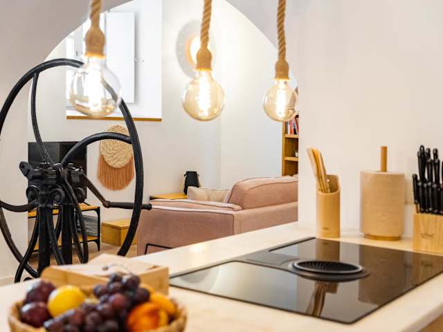 Die Ferienwohnung umfasst zwei Schlafzimmer, ein Wohnzimmer sowie eine voll ausgestattete Küchenzeile, die mit einem Kühlschrank und einer Kaffeemaschine versehen ist. Zudem stehen zwei Badezimmer mit Dusche und kostenlosen Pflegeprodukten zur Verfügung. Handtücher und Bettwäsche werden bereitgestellt.