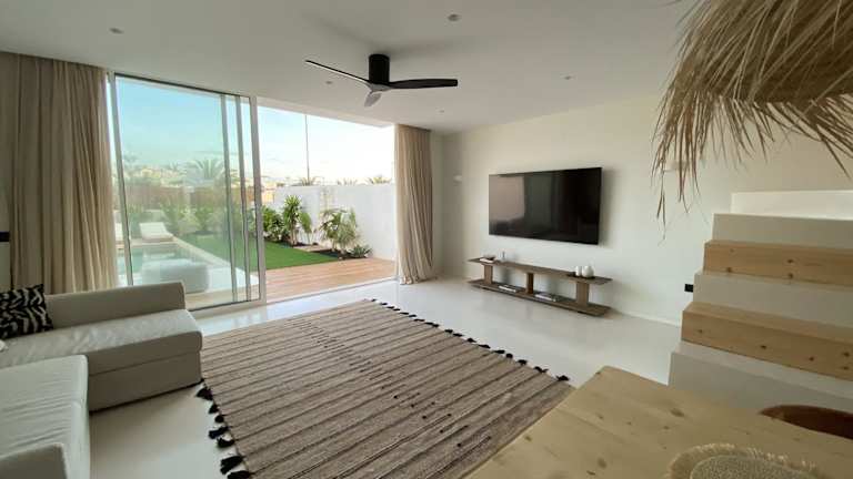 Die Villa umfasst zwei Schlafzimmer, ein Wohnzimmer, zwei Badezimmer mit Dusche und eine gut ausgestattete Küche mit Kühlschrank und Geschirrspüler. Es stehen Handtücher und Bettwäsche zur Verfügung. Die Zimmer sind modern eingerichtet und bieten allen Komfort, um einen angenehmen Aufenthalt zu ermöglichen.