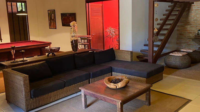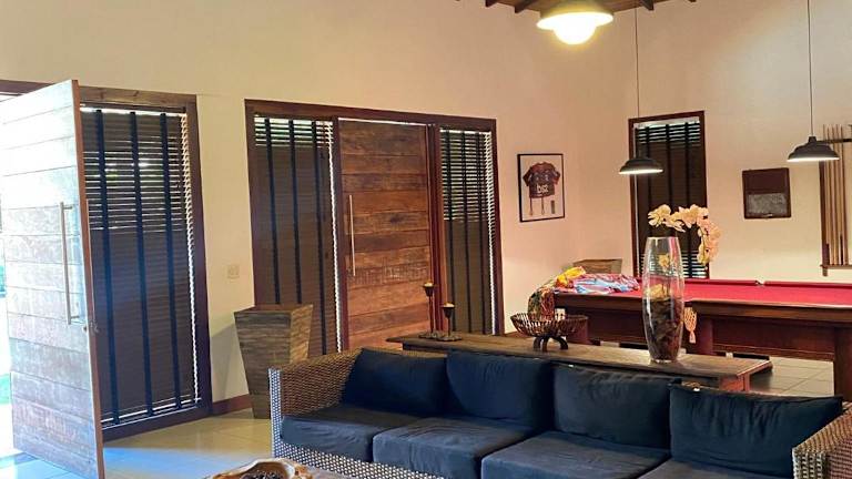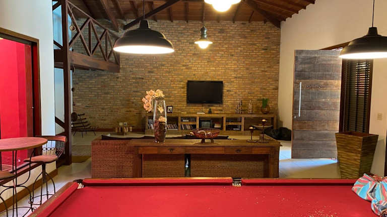 Das klimatisierte Ferienhaus im Casa de Campo sítio NSra Aparecida verfügt über 5 separate Schlafzimmer, die Ihnen viel Privatsphäre bieten. Das Wohnzimmer lädt zum Entspannen ein und die voll ausgestattete Küche ermöglicht es Ihnen, Ihre eigenen Mahlzeiten zuzubereiten. Es gibt insgesamt 5 Badezimmer, die den Aufenthalt noch angenehmer machen.