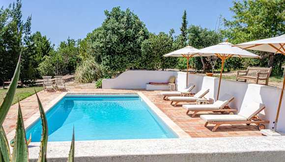 Das Casa de Seraminheiro in Melides ist ein traumhaftes Ferienhaus, das mit einem Außenpool, einem wunderschönen Garten und einer Terrasse aufwartet. Das kostenfreie WLAN und der atemberaubende Poolblick sorgen für zusätzlichen Komfort. Das Ferienhaus bietet 4 klimatisierte Schlafzimmer, einen gemütlichen Essbereich und eine voll ausgestattete Küche mit Kühlschrank. Handtücher und Bettwäsche werden gestellt, damit Sie sich wie zu Hause fühlen können. Das Casa de Seraminheiro liegt nur 31 km vom Parque Natural do Sudoeste Alentejano e Costa Vicentina und 46 km von der Insel Pessegueiro entfernt. Der Flughafen Humberto Delgado ist etwa 132 km entfernt.