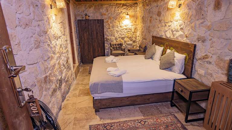 Die Zimmer im Casa Di Cappadocia bieten Ihnen einen komfortablen Aufenthalt mit modernen Annehmlichkeiten. Jedes Zimmer verfügt über einen gemütlichen Sitzbereich, einen Flachbild-Sat-TV und einen Safe. Das private Badezimmer ist mit einer Dusche, kostenfreien Pflegeprodukten und einem Haartrockner ausgestattet. Ein Wasserkocher steht ebenfalls zur Verfügung. Einige Zimmer bieten einen Balkon und andere einen herrlichen Blick auf den Garten. Bettwäsche und Handtücher werden gestellt. Kostenloses WLAN ist in allen Bereichen des Hotels verfügbar.