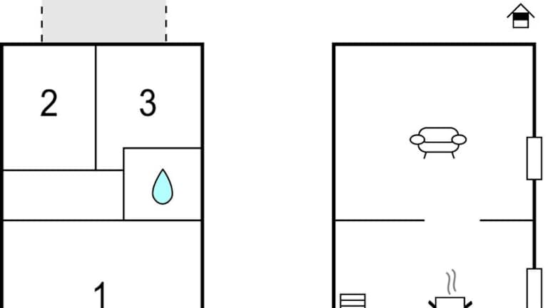 Das Ferienhaus umfasst drei Schlafzimmer, ein Wohnzimmer und eine voll ausgestattete Küche, die mit einem Kühlschrank und einer Kaffeemaschine ausgestattet ist. Zusätzlich gibt es ein Badezimmer mit einer Dusche.
