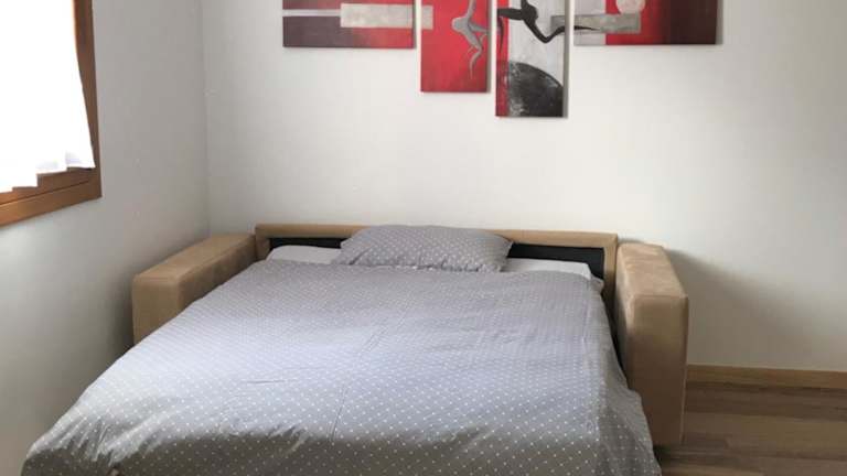 Die Ferienwohnung ist klimatisiert und verfügt über ein Schlafzimmer, ein Wohnzimmer sowie eine voll ausgestattete Küche mit Kühlschrank. Das Badezimmer ist mit einer Dusche und einem Haartrockner ausgestattet. Handtücher und Bettwäsche werden bereitgestellt.