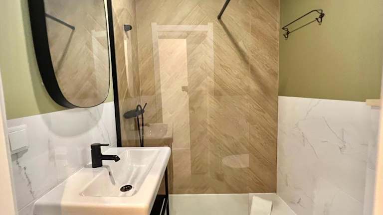 Die Ferienwohnung verfügt über 2 Schlafzimmer, 1 Badezimmer, Bettwäsche, Handtücher, einen Flachbild-TV sowie eine voll ausgestattete Küche. Ein Balkon mit Stadtblick ist ebenfalls vorhanden. Es wird ein Babybett für Kleinkinder von 0 bis 3 Jahren angeboten.