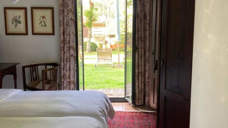 Verbringen Sie Ihren Urlaub im Casa do Ouro, einem charmanten Ferienhof in der galizischen Region Rías Baixas. Nur wenige Kilometer vom Strand entfernt, bietet dieses restaurierte Landhaus stilvolle Zimmer im Landhausstil, einen schönen Garten und eine Veranda mit herrlichem Bergblick. Entspannen Sie sich in den gemütlichen Lounges und genießen Sie die malerische Bucht Ría de Aldán, die nur einen kurzen Spaziergang entfernt liegt.