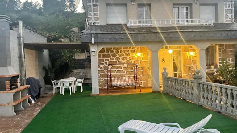 Erleben Sie einen erholsamen Aufenthalt im Casa do Pombar en Valdeorras, einem charmanten Ferienhaus mit Bergblick. Genießen Sie die Ruhe und Schönheit der Umgebung, während Sie in komfortablen Unterkünften mit einem Garten, einer Gemeinschaftslounge und einer Terrasse entspannen. Das Ferienhaus bietet kostenfreie Privatparkplätze und eine gut ausgestattete Gemeinschaftsküche. Nutzen Sie die Gelegenheit, die römischen Minen Las Médulas zu erkunden oder in der Nähe zu wandern.