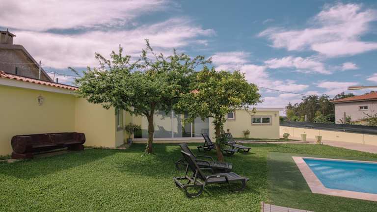 Das Casa Dona Ermelinda - Silêncio - Conforto - Natureza ist eine wunderbare Unterkunft in Outeiro Maior, die Ihnen einen erholsamen und komfortablen Aufenthalt bietet. Genießen Sie den eigenen Pool, den Garten und die Grillmöglichkeiten sowie kostenfreies WLAN und Parkplätze. Das Ferienhaus verfügt über 5 Schlafzimmer, 4 Badezimmer, eine voll ausgestattete Küche und eine Terrasse mit herrlichem Bergblick. Entspannen Sie am Außenpool oder erkunden Sie die umliegende Natur bei Wanderungen. Die Unterkunft ist gut gelegen, nur 32 km vom Musikhaus und 33 km vom Kreisverkehr Boavista entfernt. Der Flughafen Porto ist ebenfalls leicht zu erreichen, nur 17 km entfernt.