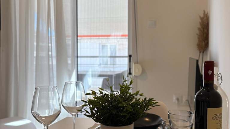 Die Ferienwohnung verfügt über ein Schlafzimmer, ein Wohnzimmer und eine voll ausgestattete Küche mit Kühlschrank und Kaffeemaschine. Zudem sind ein Badezimmer mit Dusche und kostenlosen Pflegeprodukten vorhanden. Handtücher und Bettwäsche werden bereitgestellt.