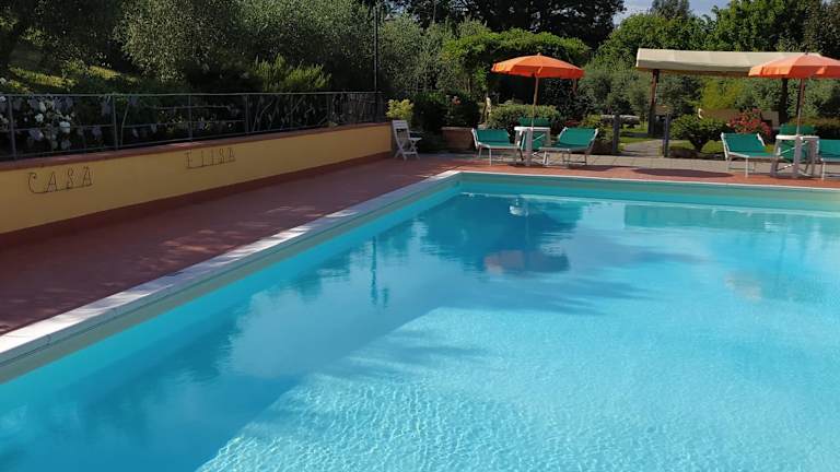 Der große, blühende Garten des Casa Elisa lädt zum Entspannen und Verweilen ein. Genießen Sie die idyllische Atmosphäre und erfrischen Sie sich im Pool. Die Umgebung bietet zudem zahlreiche Möglichkeiten für Aktivitäten wie Wanderungen oder Radtouren durch die Toskana. Nutzen Sie die überdachten Privatparkplätze, um die Umgebung bequem mit dem Auto zu erkunden. Besuchen Sie die nahegelegenen Städte Pisa und Livorno und entdecken Sie die Schönheit der Toskana.