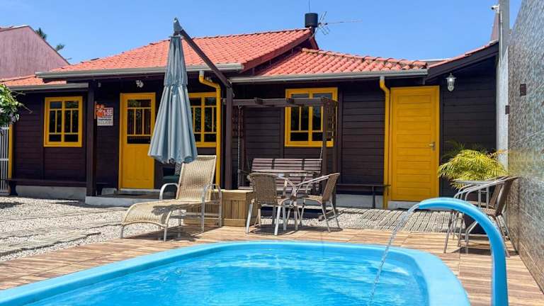 Die Unterkunft liegt in Bombinhas, 1,3 km vom Strand Praia de Bombas und 2,7 km vom Aussichtspark Bombinhas entfernt. Der nächstgelegene Flughafen ist der Flughafen Navegantes, der 55 km entfernt ist.