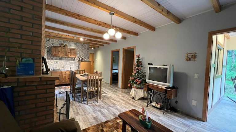 Das Casa Goethe - Bio Cult in Campo Alegre ist der perfekte Ort für einen entspannten Urlaub inmitten der Natur. Mit einem schönen Garten und Grillmöglichkeiten können Sie die ruhige Atmosphäre genießen. Das Ferienhaus bietet alle Annehmlichkeiten, die Sie für einen angenehmen Aufenthalt benötigen, darunter eine gut ausgestattete Küche, gemütliche Schlafzimmer und ein modernes Badezimmer. Handtücher und Bettwäsche werden gestellt, und Sie können auch Fahrräder ausleihen, um die Umgebung zu erkunden. Der Flughafen Joinville-Lauro Carneiro de Loyola ist in der Nähe und ein kostenpflichtiger Flughafentransfer wird angeboten.