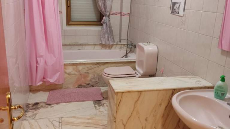 Die Ferienwohnung umfasst drei Schlafzimmer, ein Wohnzimmer und eine voll ausgestattete Küche mit Kühlschrank und Kaffeemaschine. Es gibt zwei Badezimmer, die jeweils mit einem Bidet und einer Dusche ausgestattet sind. Handtücher und Bettwäsche werden bereitgestellt.