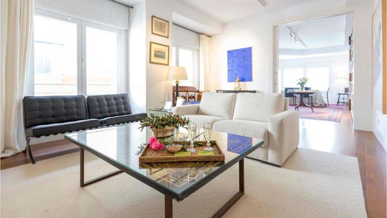 Die Ferienwohnung verfügt über zwei Schlafzimmer und ein Wohnzimmer sowie einen TV. Es gibt eine gut ausgestattete Küche mit Kühlschrank und Geschirrspüler. Zudem sind zwei Badezimmer mit Dusche vorhanden. Die Wohnung ist eine Nichtraucherunterkunft und bietet Annehmlichkeiten wie Heizung und Klimaanlage.