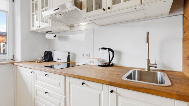 Die Ferienwohnung umfasst 1 Schlafzimmer, ein Wohnzimmer, einen Flachbild-TV sowie eine gut ausgestattete Küche mit Kühlschrank und Geschirrspüler. Zudem gibt es 1 Badezimmer mit Dusche. Handtücher und Bettwäsche werden bereitgestellt.
