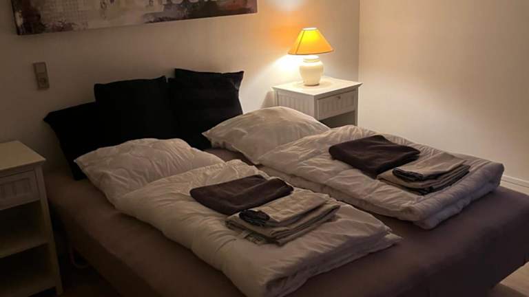 Die Ferienwohnung verfügt über 2 Schlafzimmer und ist mit einer Küche ausgestattet, die einen Kühlschrank und einen Geschirrspüler beinhaltet. Es gibt ein Badezimmer mit Dusche, Haartrockner und Waschmaschine. Handtücher und Bettwäsche werden zur Verfügung gestellt.