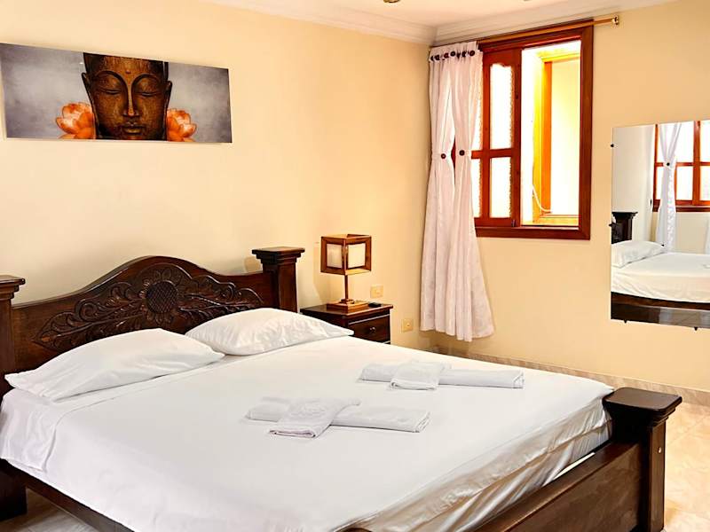 Die Zimmer sind mit einem Kleiderschrank, einem Flachbild-TV, einem eigenen Badezimmer, Bettwäsche, Handtüchern und einer Veranda oder einem Patio mit Bergblick ausgestattet. Neben Stadtblick sind die Zimmer auch mit einer Kaffeemaschine und einem Kühlschrank versehen.