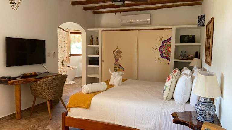 Das Casa Hridaya Hotel Boutique auf der Insel Holbox bietet seinen Gästen einen erholsamen Aufenthalt in unmittelbarer Nähe zum Strand Playa Holbox. Mit einem Außenpool, einem schönen Garten und einer Terrasse können Sie hier die Sonne und die tropische Atmosphäre genießen. Die klimatisierten Zimmer sind komfortabel eingerichtet und verfügen über kostenfreies WLAN. Das freundliche Personal steht Ihnen gerne mit einem Concierge-Service, einem Tourenschalter und einem Geldwechsel zur Verfügung. Beginnen Sie Ihren Tag mit einem köstlichen kontinentalen Frühstück.