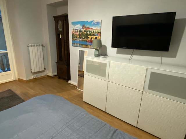 Die Ferienwohnung verfügt über ein Schlafzimmer, eine Küche mit Kühlschrank und Ofen sowie ein Badezimmer mit Dusche und kostenlosen Pflegeprodukten. Es stehen Handtücher und Bettwäsche zur Verfügung. Zu den Annehmlichkeiten gehören außerdem eine Waschmaschine, Klimaanlage und kostenfreies WLAN.