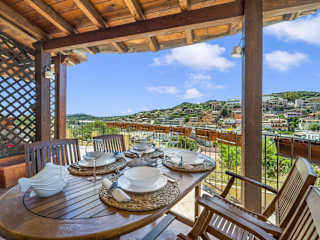 Die Ferienwohnung verfügt über 3 Schlafzimmer, 2 Badezimmer, Bettwäsche, Handtücher, einen TV, eine voll ausgestattete Küche und eine Terrasse mit Meerblick.