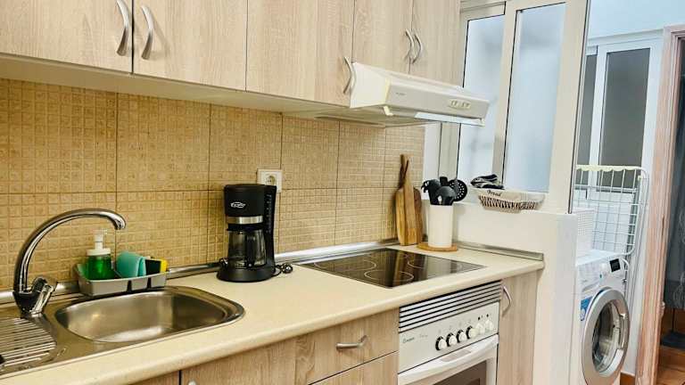 Die Unterkunft beinhaltet eine voll ausgestattete Küche, die mit einem Kühlschrank und einer Kaffeemaschine ausgestattet ist, jedoch sind keine weiteren Informationen zu Verpflegungsmöglichkeiten vorhanden.