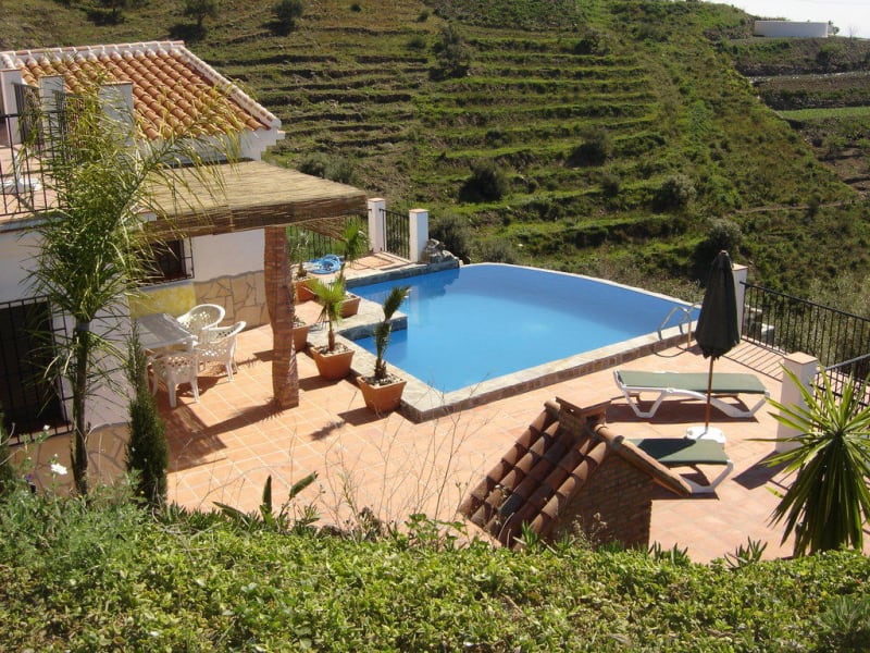 Die Casa Julia liegt im Campo (auf dem Land) des kleinen Bergdorfes Sayalonga, ca. 30 Autominuten vom nächsten Strand und 60 Autominuten vom nächsten internationalen Flughafen in Málaga entfernt. Sayalonga liegt in der Axarquía in der Provinz Málaga in Andalusien an der Costa del Sol. Zur Casa Julia hinauf gelangt man vom nächsten Ort in Sayalonga über meistens betonierte Straßen. Lediglich rund 800 Meter fährt man über einen Feldweg, der aber recht gut zu befahren ist. Einen Geländewagen benötigt man auf gar keinen Fall, wenngleich man an manchen Stellen des Feldweges langsam (Schrittempo) fahren muß In Fußwegnähe (ca. 10 Minuten) liegt ein kleines Restaurant, mit internationaler Küche sowie deutschen und spanischen Spezialitäten. Die Bodega bietet über 20 ausgesuchte Weine sowie eine Vielzahl von Bieren und alkoholfreien Getränken an. In den Räumlichkeiten befindet sich des Weiteren eine Dauerausstellung bildender Kunst und eine kleine Bücherei; im Außenbereich befindet sich ein Skulpturengarten. Genießen Sie dort mit allen Sinnen das Essen und Trinken, die Atmosphäre und den wundervollen Ausblick. Zum nächstgelegenen Strand in Algarrobo Costa (nähere Infos finden Sie in unserem Online-Reiseführer http://www.andalucia-online.de) fahren Sie mit Ihrem Mietauto ca. 25 - 30 Minuten. Es gibt auch einen kürzeren Weg, der allerdings ziemlich holprig ist. Einen Geländewagen benötigt man für diesen Weg nicht zwingend, aber für den weniger erfahrenen Fahrer wäre bzw. ist ein Geländewagen für diese Abkürzung durchaus hilfreich bzw. sogar notwendig. Nach Sayalonga selbst, wo Sie essen gehen und auch einkaufen können, sind es lediglich rund 10 Minuten mit dem Auto. Allerdings empfehlen wir Ihnen, an der Küste z.B. beim Lidl in Algarrobo Costa einzukaufen, da dort die Auswahl wesentlich größer ist und vor allem die Preise um einiges günstiger sind.