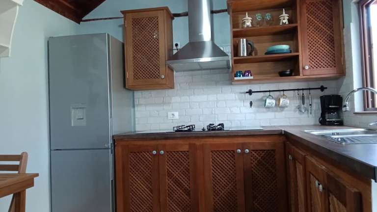 Das Ferienhaus bietet ein Schlafzimmer, ein Wohnzimmer, einen Flachbild-TV sowie eine gut ausgestattete Küche mit Kühlschrank und Oven. Ein Badezimmer mit Dusche ist ebenfalls vorhanden. Handtücher und Bettwäsche werden zur Verfügung gestellt. Die Terrasse des Ferienhauses ermöglicht den Blick aufs Meer.
