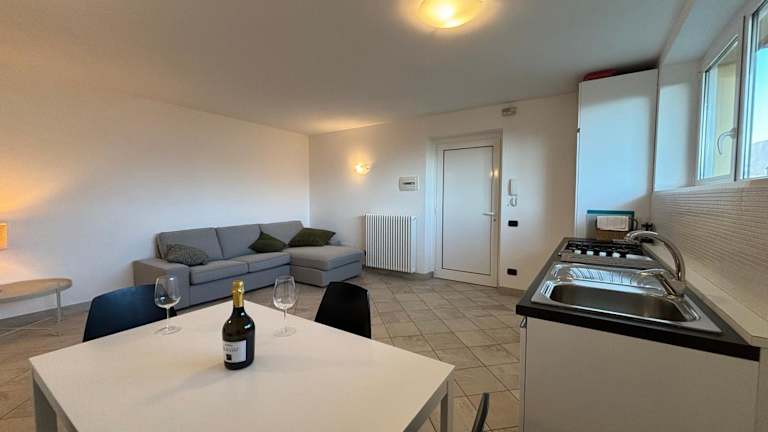 Die Ferienwohnung besteht aus einem Schlafzimmer, einem Wohnzimmer und einer voll ausgestatteten Küche, die über einen Kühlschrank und einen Wasserkocher verfügt. Zudem gibt es ein Badezimmer mit Bidet und Dusche. Handtücher und Bettwäsche werden bereitgestellt.
