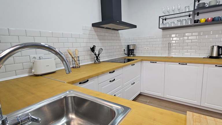 Das Ferienhaus ist ausgestattet mit einer Küche, die einen Kühlschrank und Geschirrspüler umfasst. Zudem stehen 3 Badezimmer mit Dusche, Haartrockner und Waschmaschine zur Verfügung. Handtücher und Bettwäsche werden bereitgestellt.