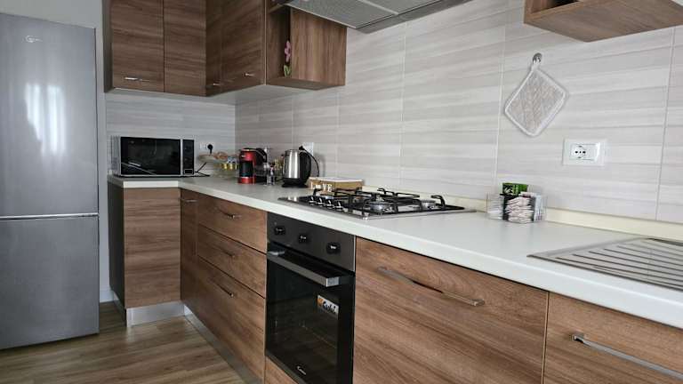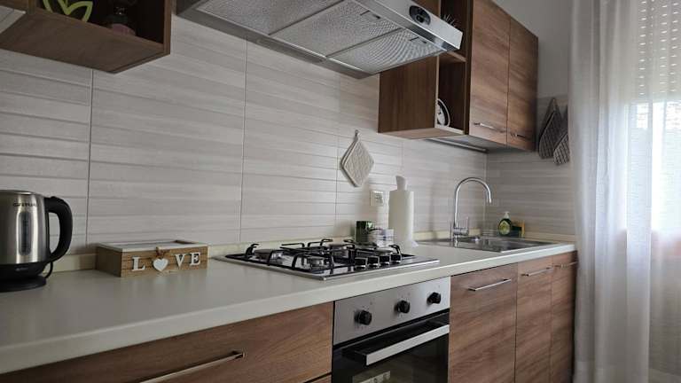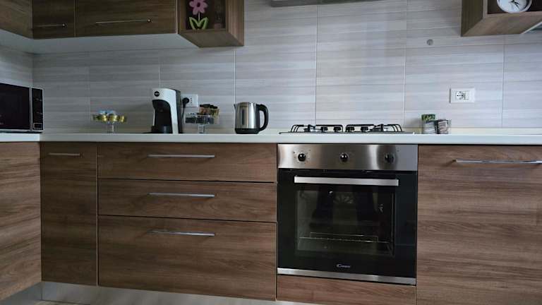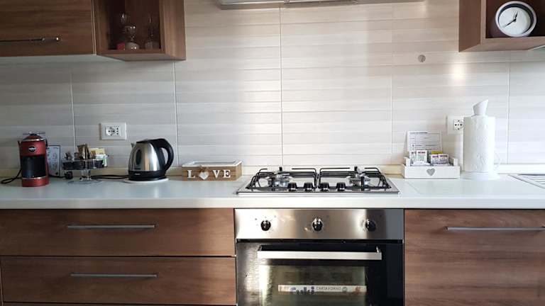 Die Ferienwohnung verfügt über eine voll ausgestattete Küche mit Kühlschrank und Kaffeemaschine, ein Badezimmer mit Bidet und Dusche sowie über Handtücher und Bettwäsche.