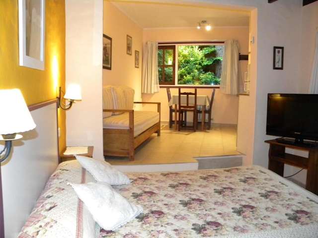 Das Casa los Tilos ist eine charmante Unterkunft in Valeria del Mar, nur 1,4 km vom Strand Playa Valeria del Mar entfernt. Hier können Sie einen entspannten Aufenthalt inmitten eines schönen Gartens genießen und von einer 24-Stunden-Rezeption profitieren. WLAN steht Ihnen in allen Bereichen kostenfrei zur Verfügung. Die Unterkünfte sind komfortabel eingerichtet und bieten Annehmlichkeiten wie einen Flachbild-Sat-TV, eine voll ausgestattete Küche und ein eigenes Bad mit kostenlosen Pflegeprodukten. In der Nähe finden Sie auch weitere schöne Strände wie Playa Ostende und Playa Cariló. Der internationale Flughafen Villa Gesell ist nur 18 km entfernt.