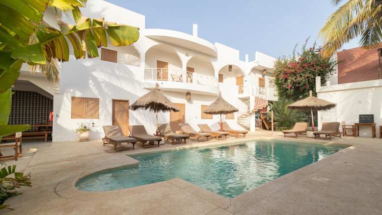 Das Casa Louka in Saly Portudal ist eine ideale Unterkunft für einen entspannten Aufenthalt. Hier können Sie das ganze Jahr über den Außenpool genießen und von kostenfreiem WLAN profitieren. Das Bed & Breakfast bietet zudem einen schönen Garten und eine gemütliche Gemeinschaftslounge. Starten Sie den Tag mit einem köstlichen kontinentalen Frühstück. Die Lage des Casa Louka ist perfekt, da der Strand von Mbour nur 1,5 km entfernt liegt und der Golfplatz Golf De Saly nach 4,4 km erreichbar ist. Der internationale Flughafen Blaise Diagne ist nur 28 km entfernt, und die Unterkunft bietet einen bequemen kostenpflichtigen Flughafentransfer.