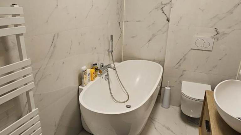 Die Ferienwohnung verfügt über 4 separate Schlafzimmer, eine voll ausgestattete Küche mit Kühlschrank und Ofen sowie 3 Badezimmer. Handtücher und Bettwäsche sind in der Unterkunft verfügbar.