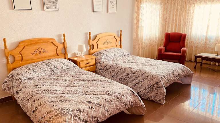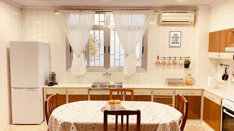 Das klimatisierte Ferienhaus im Casa Mayor verfügt über 5 Schlafzimmer, ein geräumiges Wohnzimmer und eine voll ausgestattete Küche mit Kühlschrank und Kaffeemaschine. Es gibt auch 2 Badezimmer mit Bidet und Dusche. Handtücher und Bettwäsche werden gestellt, um Ihren Aufenthalt noch angenehmer zu gestalten.