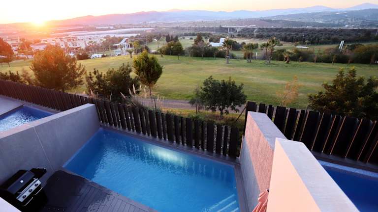 Das Casa Melocotón - Designhouse in Caleta De Velez bietet eine luxuriöse Unterkunft mit privatem Pool direkt am Golfplatz. Das Ferienhaus verfügt über 3 Schlafzimmer, eine voll ausgestattete Küche und 3 Badezimmer. Die Gäste können den atemberaubenden Bergblick vom Balkon aus genießen und sich in der Gemeinschaftslounge oder auf der Terrasse entspannen. WLAN ist in allen Bereichen kostenlos verfügbar. Die Lage des Hauses ermöglicht Aktivitäten wie Wandern und Angeln, während der Strand Torre del Mar nur 1,7 km entfernt ist. Der nächste Flughafen, Málaga, ist 48 km entfernt. Die Unterkunft bietet auch einen kostenpflichtigen Flughafentransfer.