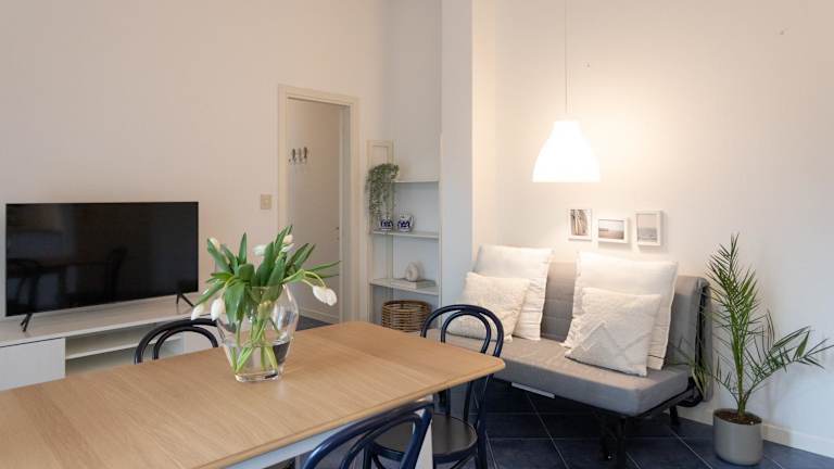 Die Unterkunft bietet eine voll ausgestattete Küche mit Kühlschrank und Geschirrspüler, jedoch keine spezifischen Informationen zu Verpflegungsmöglichkeiten oder gastronomischen Angeboten.