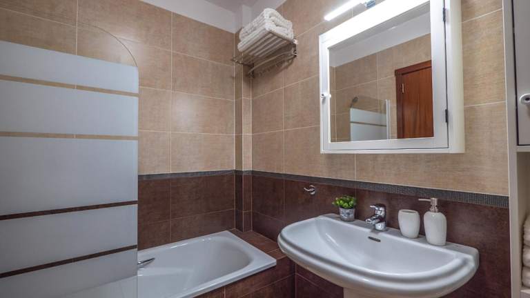 Die Ferienwohnung verfügt über zwei Schlafzimmer, ein Wohnzimmer und ein Badezimmer mit Badewanne. Zur Ausstattung gehören ein Flachbild-TV sowie eine gut ausgestattete Küche mit Kühlschrank und Ofen. Handtücher und Bettwäsche werden zur Verfügung gestellt.