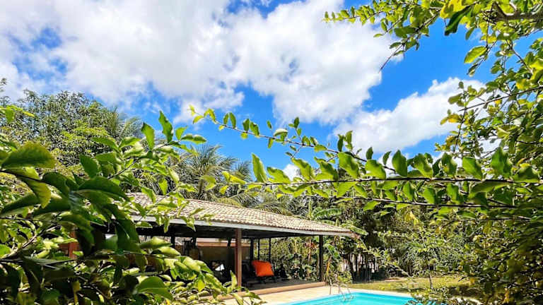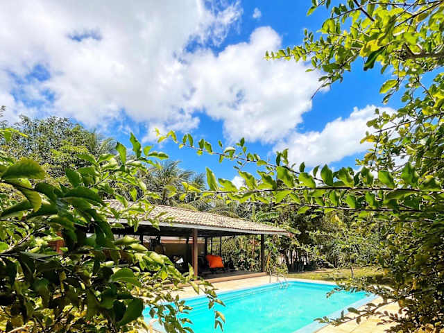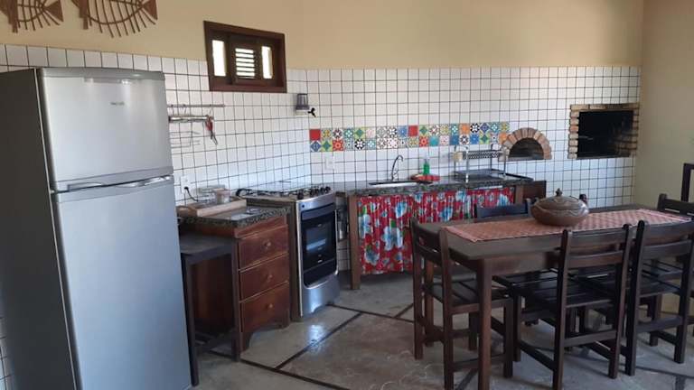 Die Casa na linda praia de Jericoacoara bietet Übernachtungsmöglichkeiten in einem Ferienhaus mit privatem Außenpool, Fitnesscenter und Garten. Das Gebäude ist ausgestattet mit kostenlosem WLAN und bietet Blick auf den Pool.