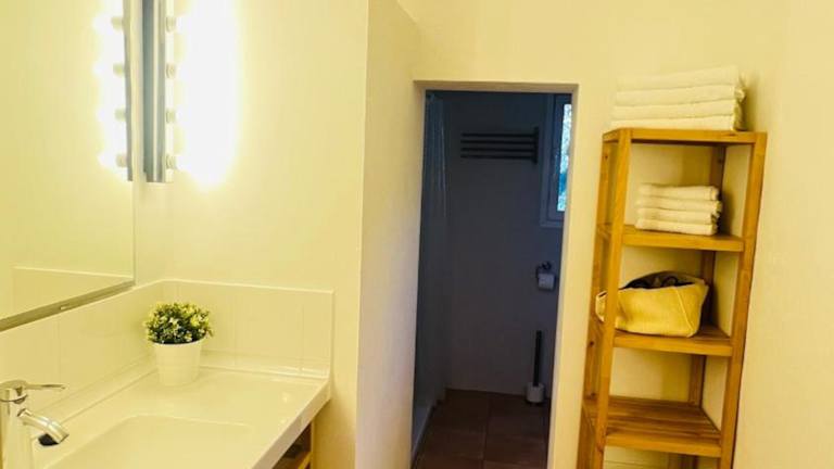 Die Villa umfasst 1 Schlafzimmer, ein Wohnzimmer sowie eine voll ausgestattete Küche mit Kühlschrank und Kaffeemaschine. Das Badezimmer ist mit einem Bidet und einer Dusche ausgestattet. Handtücher und Bettwäsche werden bereitgestellt. Die Unterkunft bietet eine Veranda / Patio und ist klimatisiert.