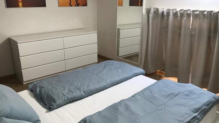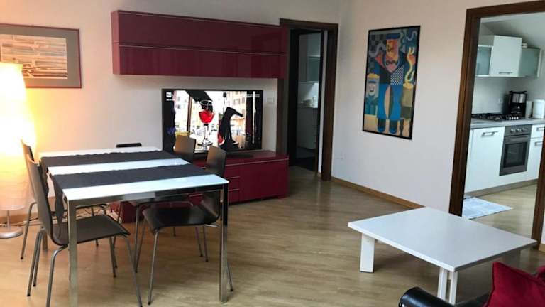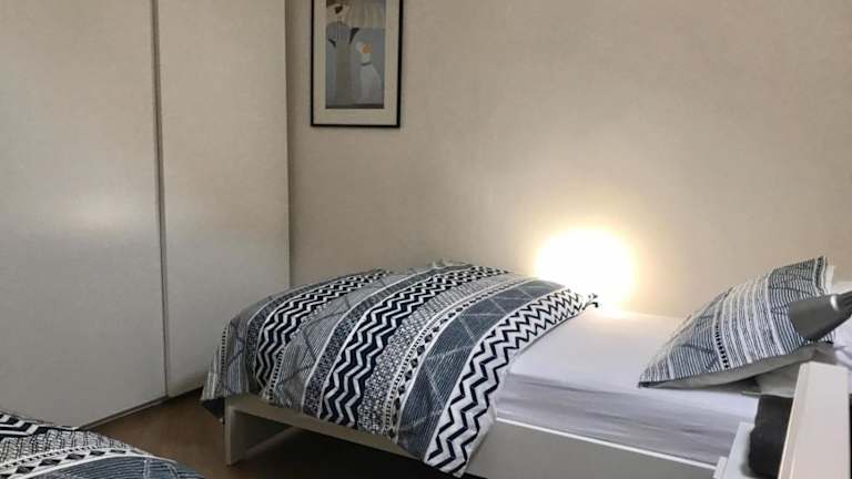 Die Ferienwohnung umfasst zwei Schlafzimmer, ein Wohnzimmer und eine voll ausgestattete Küche mit Kühlschrank und Kaffeemaschine. Zudem gibt es ein Badezimmer mit Bidet und Dusche. Handtücher und Bettwäsche werden zur Verfügung gestellt.