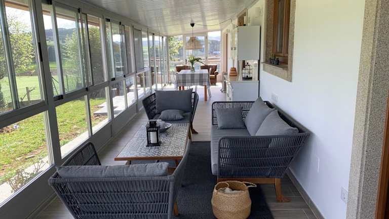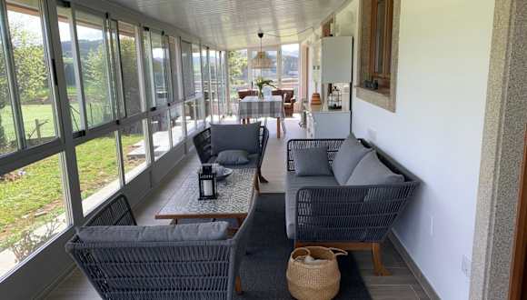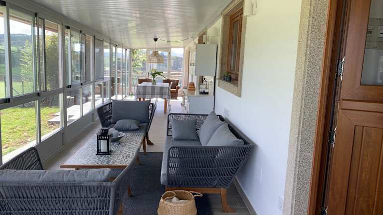 Das Ferienhaus Pazo de Antonio da Ponte bietet eine Terrasse mit Blick auf das große Grundstück, auf dem Sie die Natur genießen können. In der Umgebung gibt es auch Möglichkeiten für Outdoor-Aktivitäten wie Wandern, Radfahren und Erkunden der umliegenden Städte.