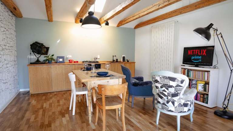 Die Ferienwohnung verfügt über 1 Schlafzimmer, ein Wohnzimmer und eine voll ausgestattete Küche, die mit einem Kühlschrank und einer Kaffeemaschine ausgestattet ist. Das Badezimmer beinhaltet ein Bidet und eine Dusche. Handtücher und Bettwäsche werden bereitgestellt. Die Unterkunft ist klimatisiert und bietet Annehmlichkeiten wie Heizung, WLAN, Nichtraucherzimmer sowie einen Zugang mit Schlüssel.